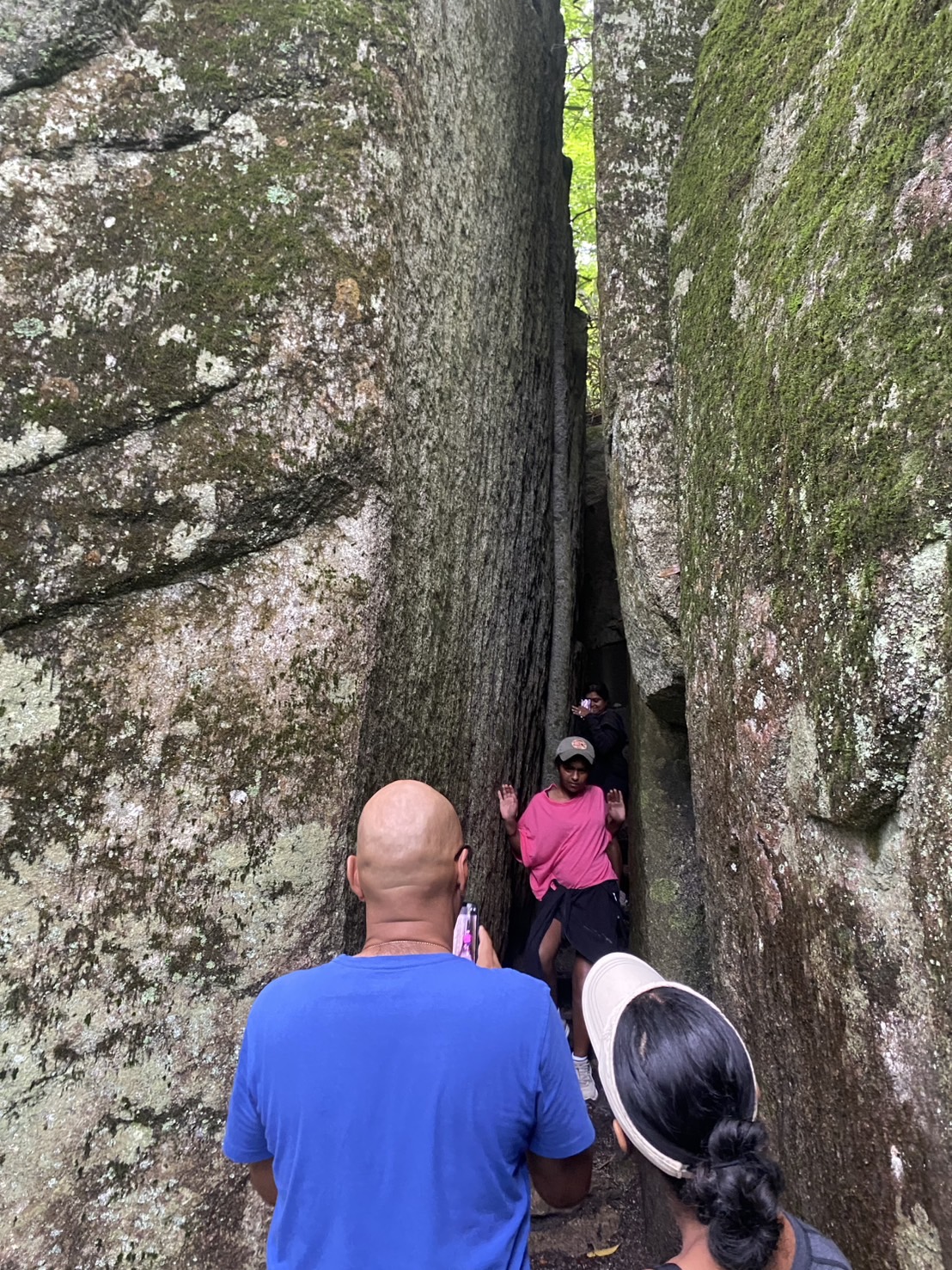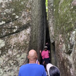 It is said that if you enter the crack of the large rock there and circle around it three times, your wish will come true.